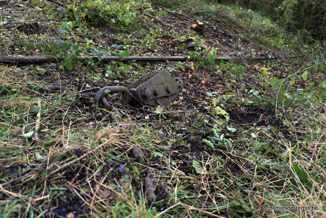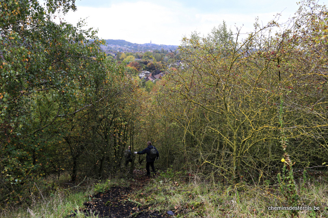 Aux abords du sentier d’accès vers le premier plateau, un tout petit peu en hauteur, se trouvent les tombes des puits (Siège Ma Campagne) de ce charbonnage Sacré-Madame. A voir !