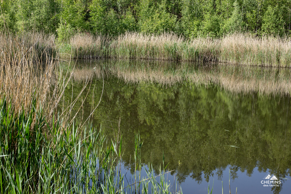 Par ses plateaux étagés et ses étangs, anciens bassins de lavage des schistes durant le processus d’ exploitation, le site du Pétria présente la morphologie type d’un terril valorisé.