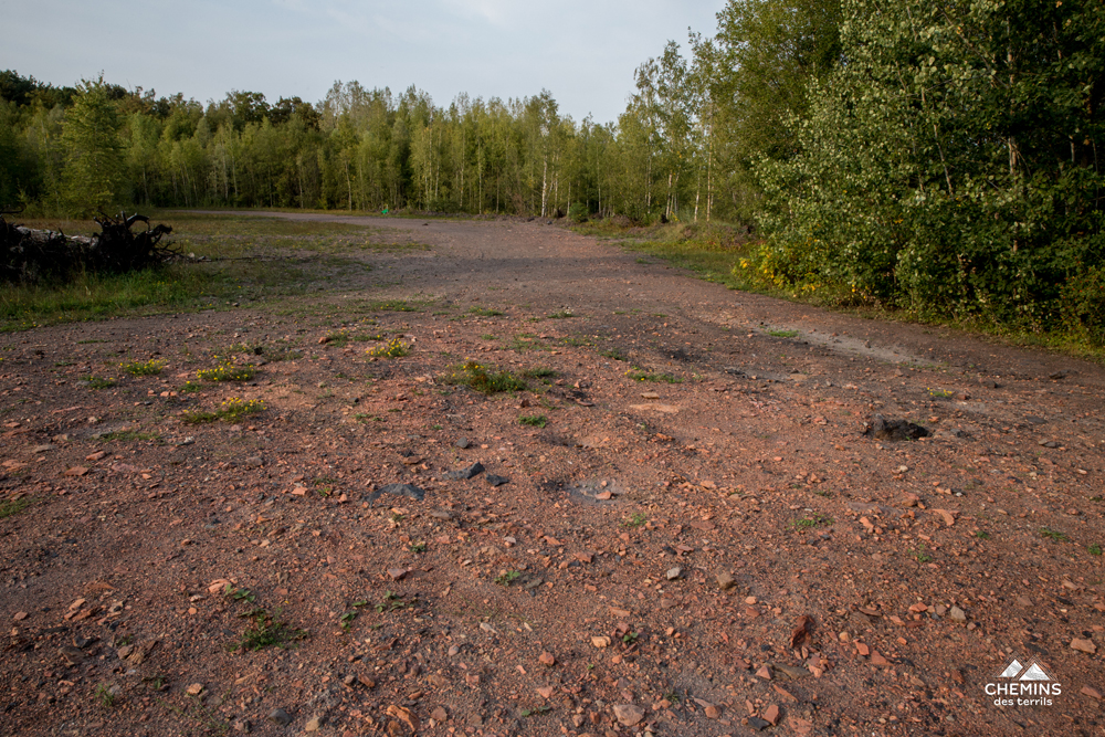 Depuis ce chemin, au pied du terril, se cache la tombe du puits de mine qui descendait à 1206 mètres sous terre!