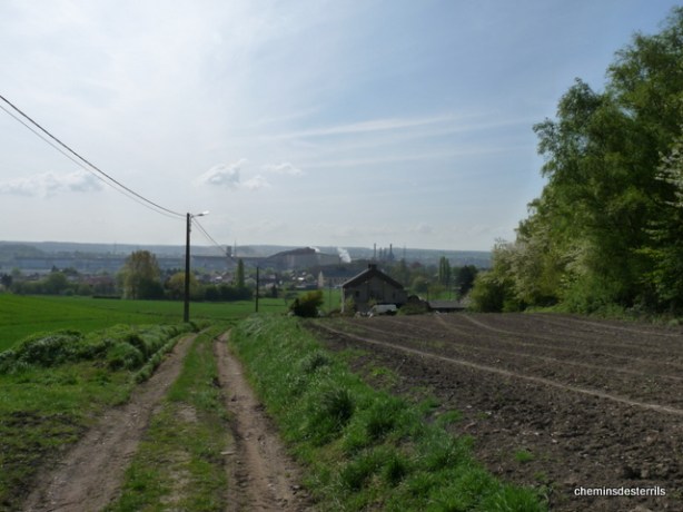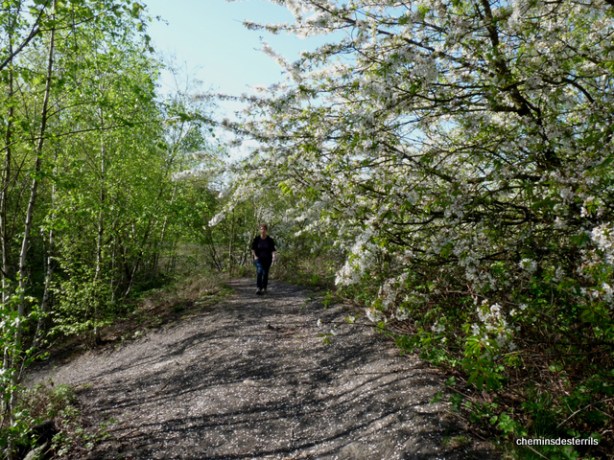 Le GR412 aborde et traverse le terril via le balisage blanc et rouge.