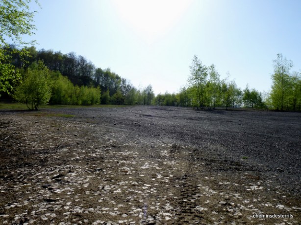 Le terril présente un plateau sur sa partie SUD. Trace d’exploitation après la fermeture du charbonnage.