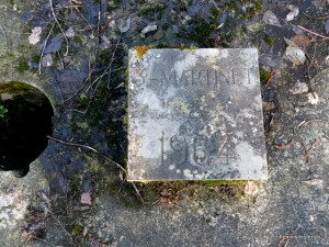 Plaque signalétique du puits n°3 du Martinet datée de 1964 sous le chevalement en béton.