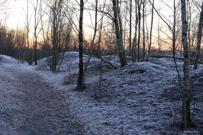 Le grand terril garde la marque des derniers déversements par camions. (ici en hiver!)
