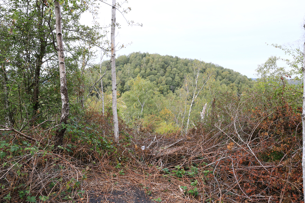 Un sentier récemment réhabilité permet l’accès à la crête sommitale du grand terril avec vue sur la vallée de la Sambre. Jolie rencontre avec Saint-Alphonse, la sculpture au sommet du terril. (Vestige du culbuteur).